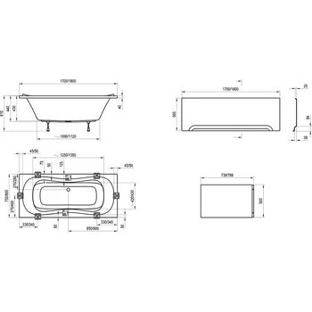 Ravak Campanula II 170x75 egyenes fürdőkád + kádláb, fehér