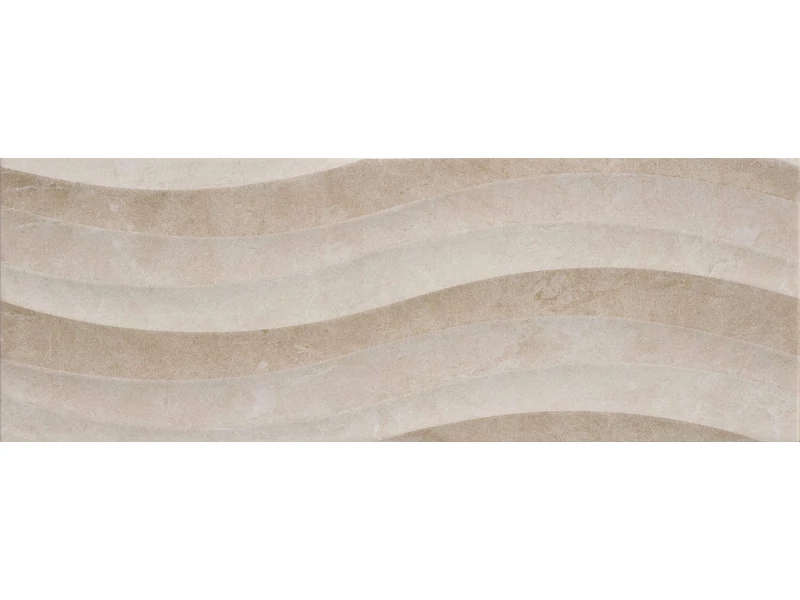 A Prissmacer Opera / Arte Light Rlv. 25×70 cm-es fényes dekorcsempe letisztult bézs árnyalatával és hullámmintás dombormintás felületével stílusos, kifinomult megjelenést kölcsönöz otthonának. Modern és klasszikus enteriőrökben egyaránt elegáns választás, különösen fürdőszobák és konyhák falain, ahol látványos fókuszpontot hozhat létre.