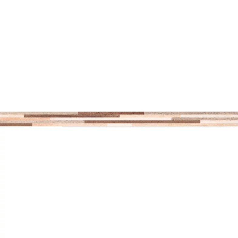 A Zalakerámia Petrol SZ-50036 dekorcsík 3×50 cm-es méretével kifinomult díszítő elemként illeszthető a fürdőszoba és konyha falburkolatába. Fényes, mozaikszerű csíkos textúrája egyedi ritmust visz a térbe, miközben természetes, barnás-bézses árnyalataival harmonikusan kapcsolódik a Petrol kollekció fahatású csempéihez.